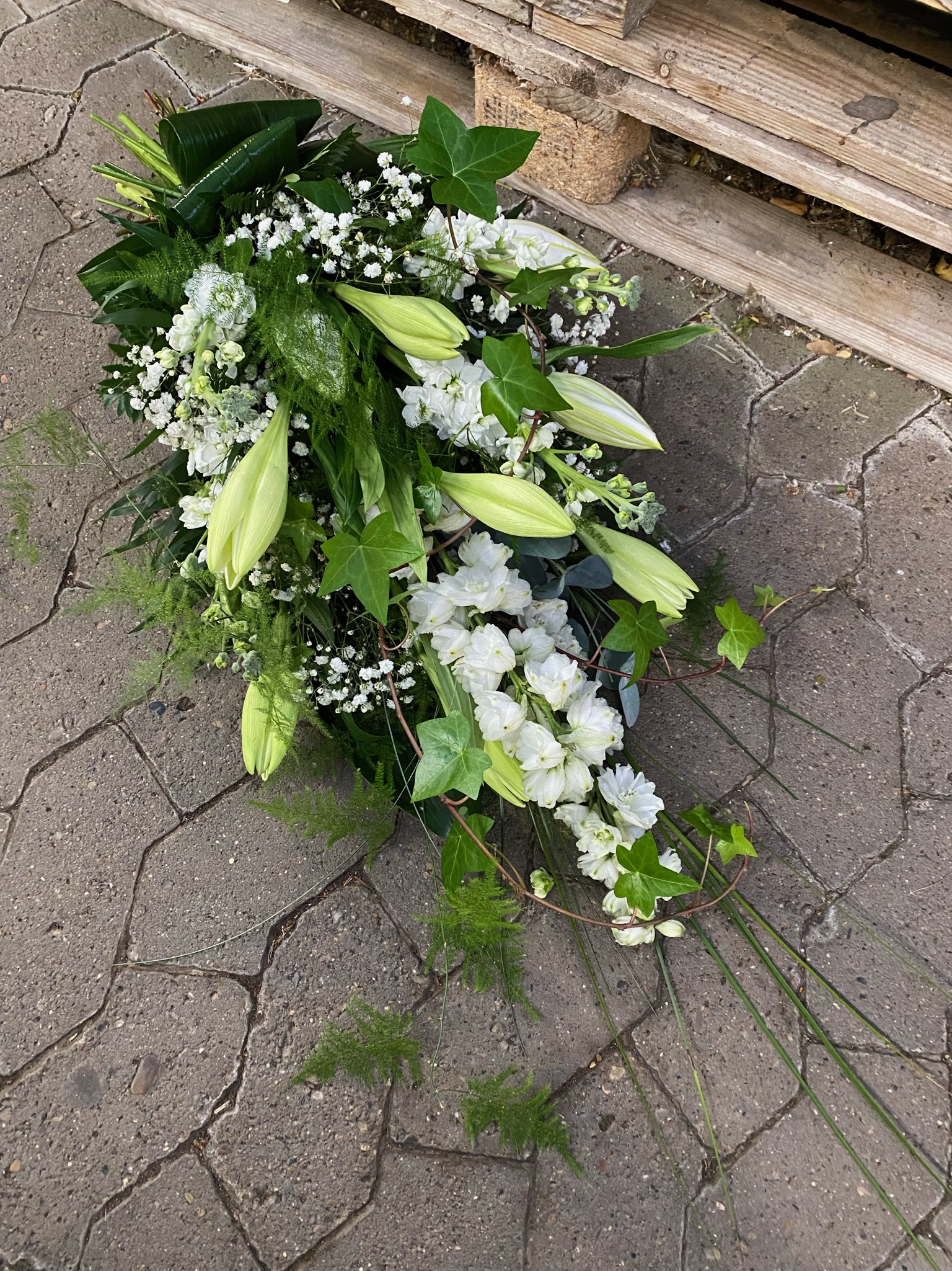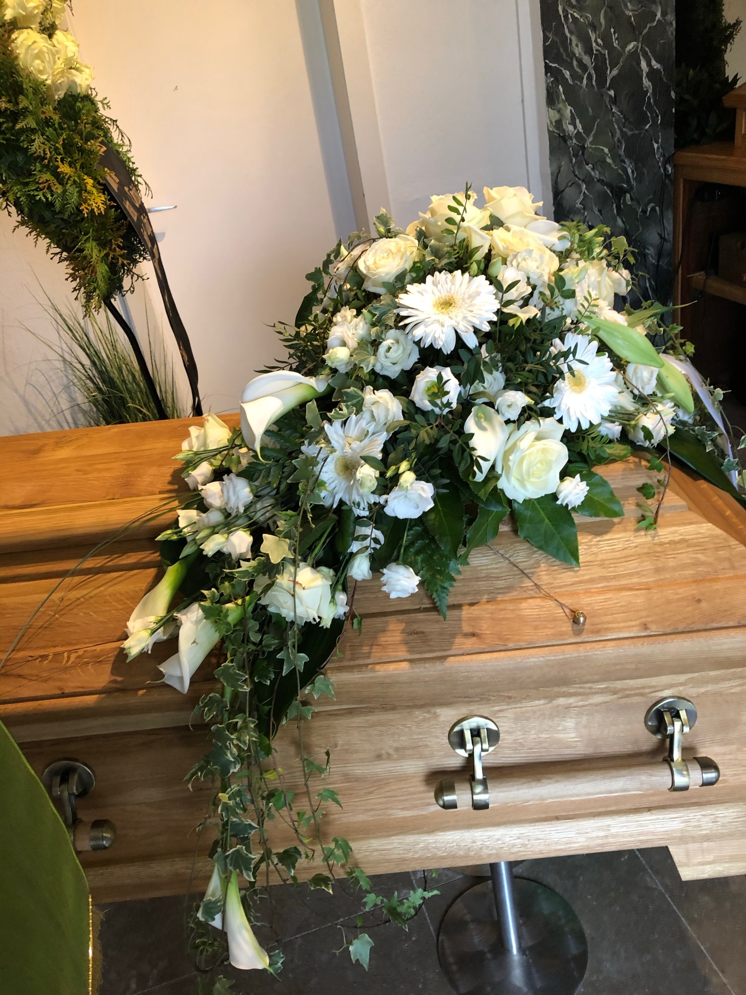 Nach euren Vorstellungen gestalten wir individuelle Trauerarrangements wie Sargbouquets, Trauerkränze, Gestecke, Grabsträuße oder andere florale Werkstücke als letzten Gruß an den Verstorbenen oder Zeichen der Verbundenheit und des Mitgefühls mit den Hinterbliebenen.
